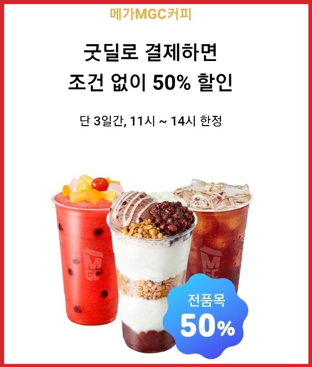 - 이벤트명: 메가커피 굿딜 타임어택 50% 할인